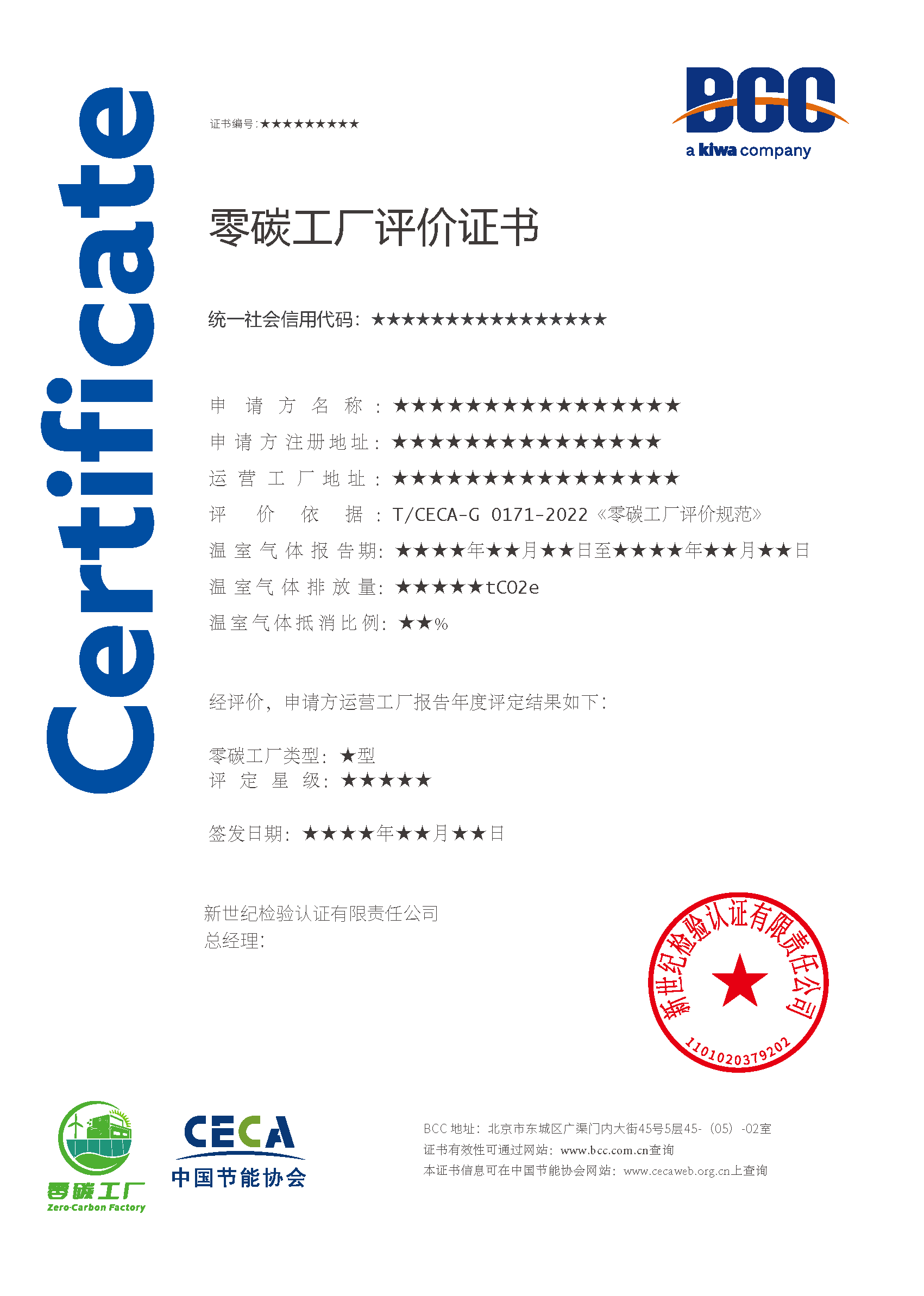 Kiwa BCC順利通過《零碳工廠評價規(guī)范》第三方評價機構(gòu)審查,成功獲得“零碳工廠”評價認(rèn)證服務(wù)機構(gòu)資格,可頒發(fā)零碳工廠認(rèn)證證書。