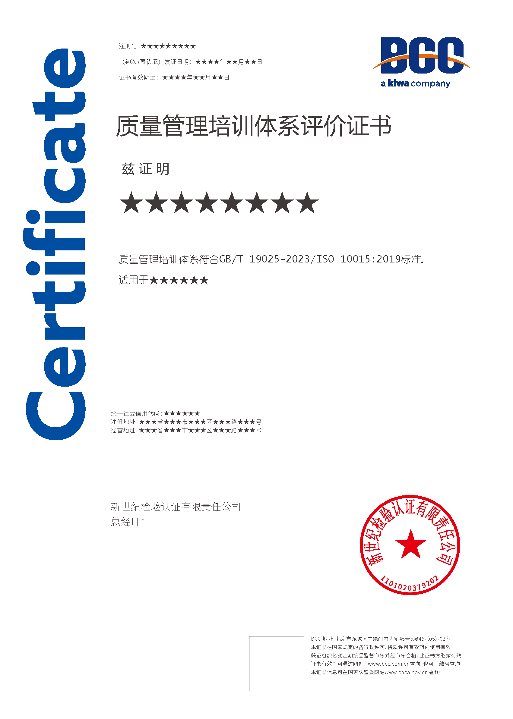 質量管理培訓評價,是依據(jù)GB/T 19025-2001 idt ISO 10015:1999標準實施的認證,旨在幫助組織建立并規(guī)范管理培訓的各個環(huán)節(jié),提供關于組織培訓的指導原則和最佳實踐,不斷提升員工素質和能力,增強組織的競爭力。