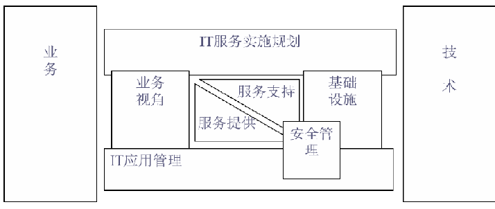 IT 服務(wù)實施規(guī)劃處于整個結(jié)構(gòu)的最高層,功能是對框架內(nèi) 6 大模塊開展各項工作進(jìn)行指導(dǎo),幫助用戶分析現(xiàn)有情況,協(xié)助設(shè)定發(fā)展戰(zhàn)略與目標(biāo),同時在實踐中對完成的工作進(jìn)行評測,給出調(diào)整意見。